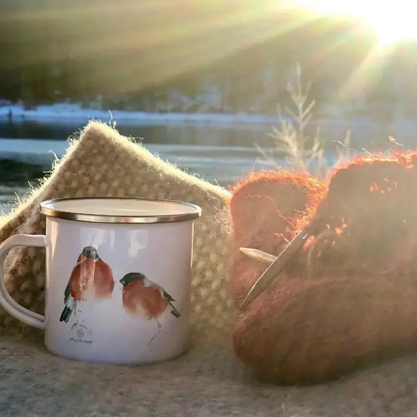 Tekst eller logo på baksiden av emaljekoppen er valgfri.